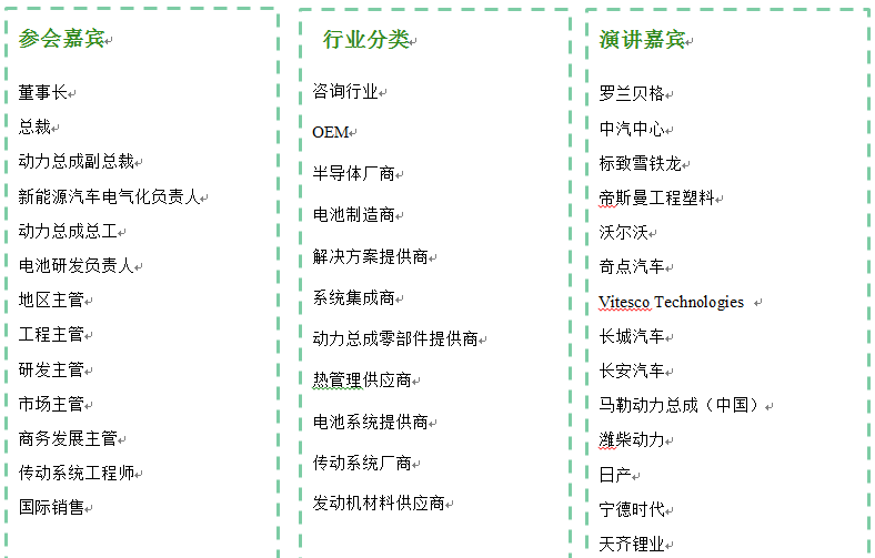 本次论坛将采用 「线下私享+线上直播」 的方式聚集约350+电动汽车行业的专家与高管,他们将来自全球知名整车企业,一级&二级供应商,软件提供商,动力电池制造商等。本次国际会议所涉及的议题有新能源汽车动力总成系统设计,动力总成控制系统,固态电池技术的研发以及其他众多先进技术的讨论。参与本次国际峰会,您可以和业内知名专家与高管进行面对面沟通,了解市场信息,掌握最新情报,抓住新能源汽车浪潮所带来的机遇。