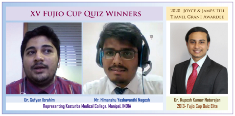 第15届Fujio Cup Quiz获胜者——来自印度Kasturba医学院的Ibrahim博士和Nagesh先生,以及2020年Joyce and James Till Travel Grant获得者Natarajan博士。(2013年FCQ精英)。(图示:美国商业资讯)