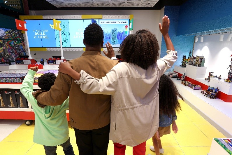 纽约第五大道的乐高商店以乐高积木互动为基础,提供全球首个沉浸式数字和实体相结合的零售体验。步入商店,就能感受到高耸的“探索之树”带来的互动式迎宾体验;无论男女老少都会惊叹于这些致敬纽约城市符号的真人大小的乐高模型:比如可以坐进去的出租车,可以和观众互动的自由女神像,气派的帝国大厦,世贸大楼,百老汇和时代广场的灯光和广告牌等。