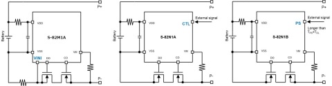 Examples of protection circuits using the S-82M1A/S-82N1A/S-82N1B Series (Graphic: Business Wire)