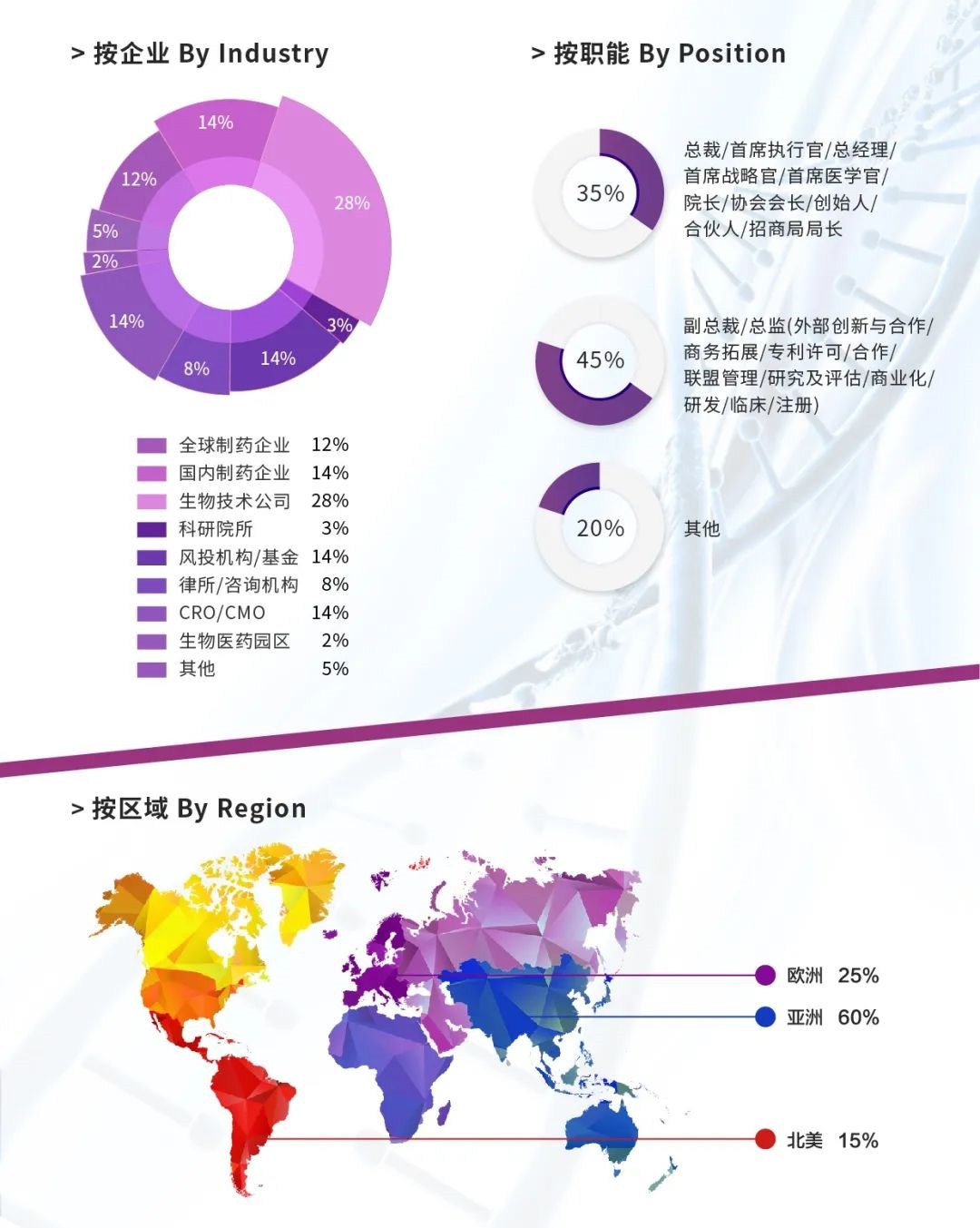 Bio Partnering APAC 亚太生物医药合作峰会 是亚太区域首屈一指的专注于生物医药“合作”主题的高端战略峰会。自2016年在上海首届开幕以来,BIO APAC 峰会见证了中国生物医药行业的变革与创新。中国药监机构大刀阔斧的历史性改革、生物医药企业创新研发的国际化征程、跨境交易合作案例重磅炸弹式涌现、证券资本市场的热浪席卷了整个生物医药产业。大批海归博士精英回国创业、创新药企上市步伐竞相加速、新药研发服务型企业估值持续走高、跨国药企在华战略布局顺势大变、生物医药产业园区如雨后春笋般发展。