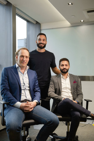 Dennis Plomp (l), Anastasios Papadopoulos (standing) and Ralph Chammah, CEO OwlGaze (r). (Photo: Business Wire)